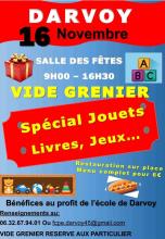 Pré réservation par mail en indiquant votre nom, prénom, adresse, numéro de téléphone et le nombre de tables à réserver : fcpe.darvoy@yahoo.fr