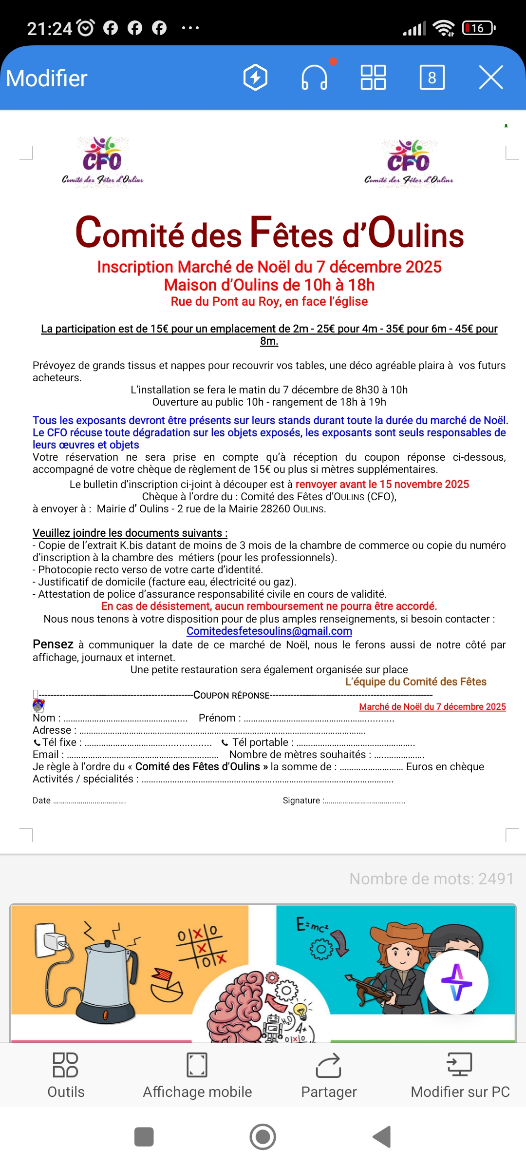 - Adresse Mail: comitedesfetesoulins@gmail.com