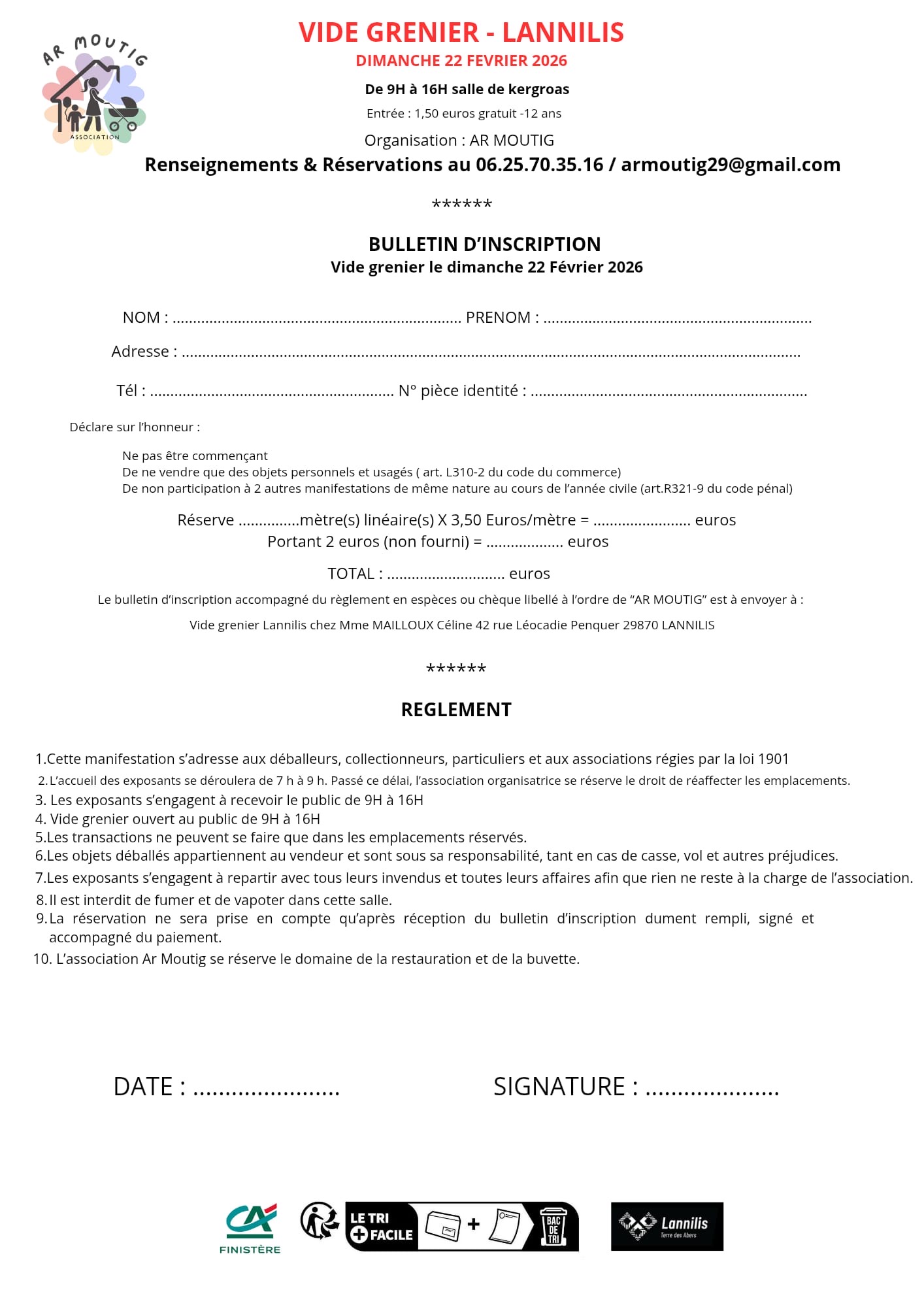 Fiche d'inscription: