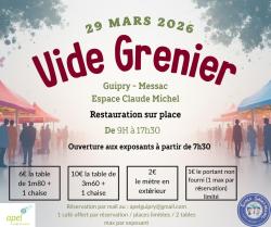 - Int. : 6 € la table, 10 € les 2, 1 € le portant non fourni