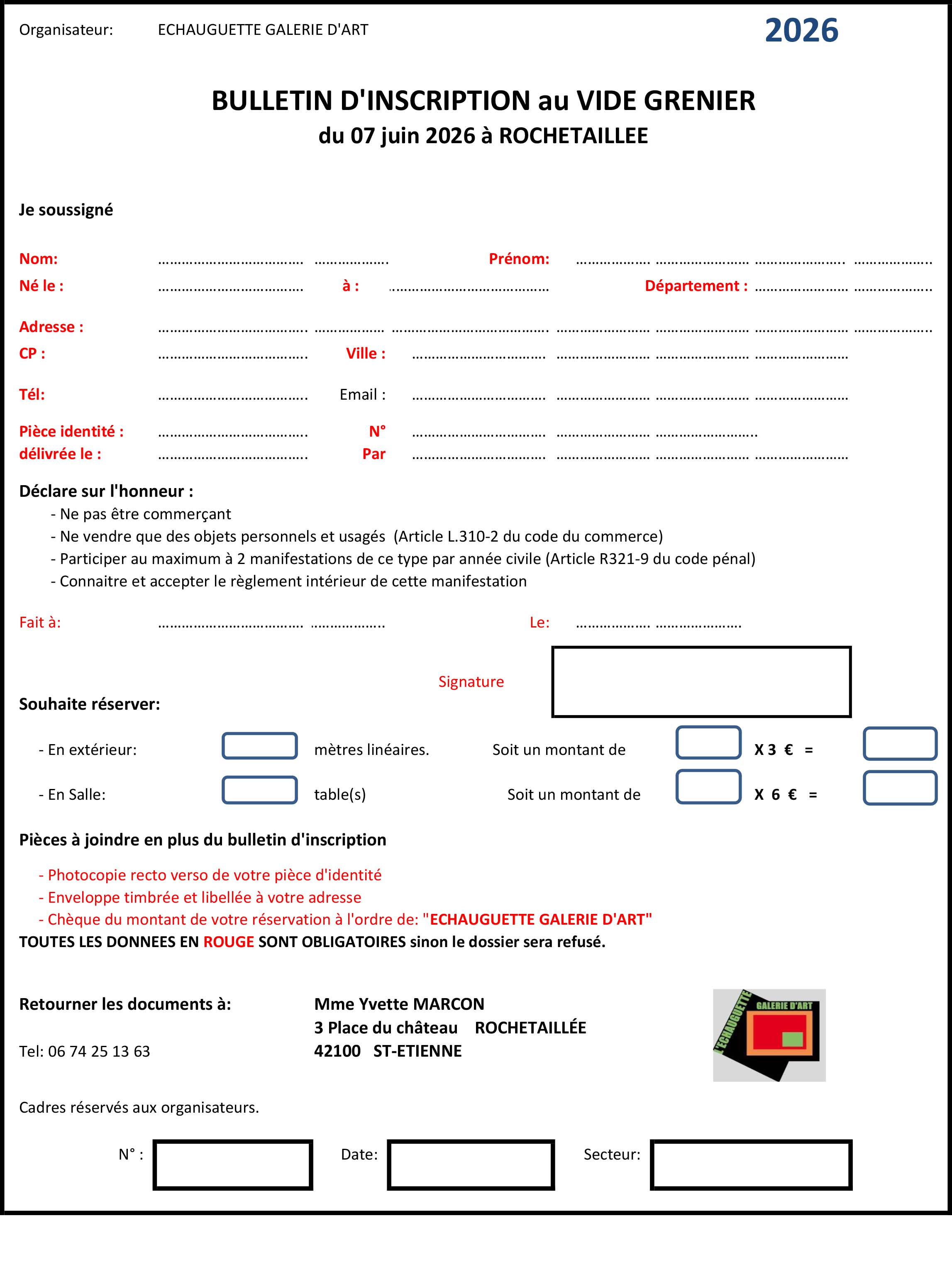 Fiche d'inscription: