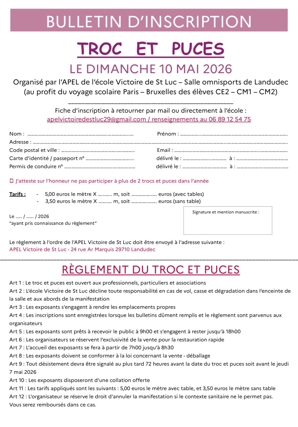 - Organisation: APEL Victoire de St-Luc