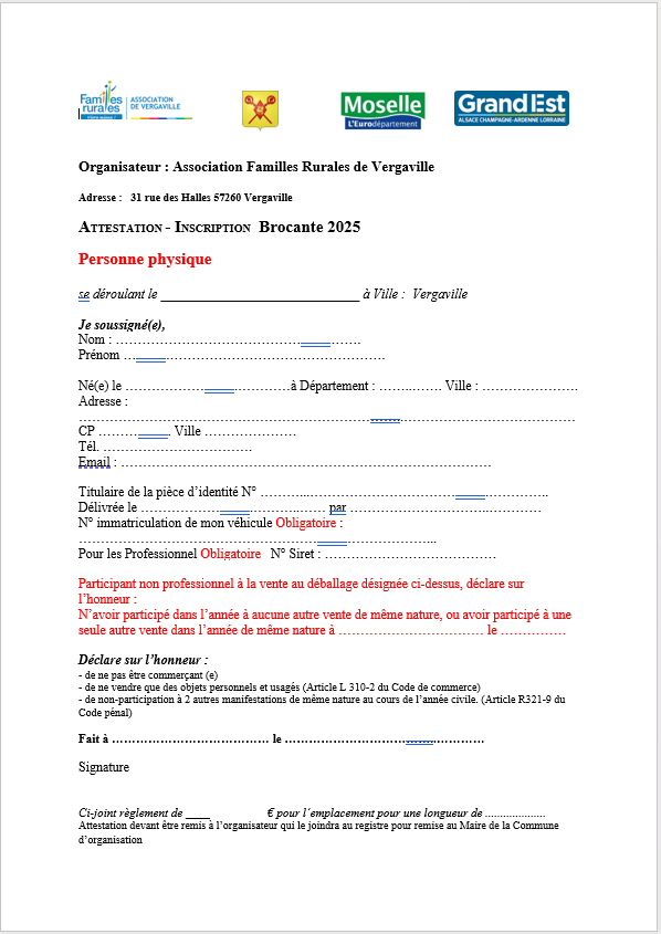 Fiche d'inscription: