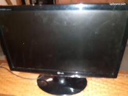 vends un grand écran plat d'ordinateur couleur noir de marque LG de 21 pouces s'adapte a tous types centrale